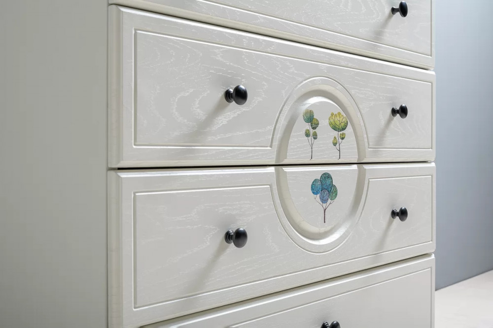 В коллекции Роуз 4 элемента с разным функционалом, которые помогут грамотно сформировать пространство детской комнаты: кровать с большим спальным местом и емкими выкатными ящиками будет шикарно смотреться при любой постановке в интерьере; вместительный комод сможет идеально распределить вещи и игрушки; просторный шкаф сохранит в порядке детский гардероб, а лаконичная, но немаловажная тумбочка отлично дополнит.