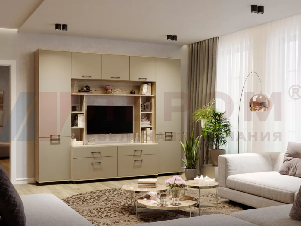Гостиная СИДНЕЙ-2 (ш3000*г470*в2000мм), ЛДСП Белый/ЛДСП Ателье светлое