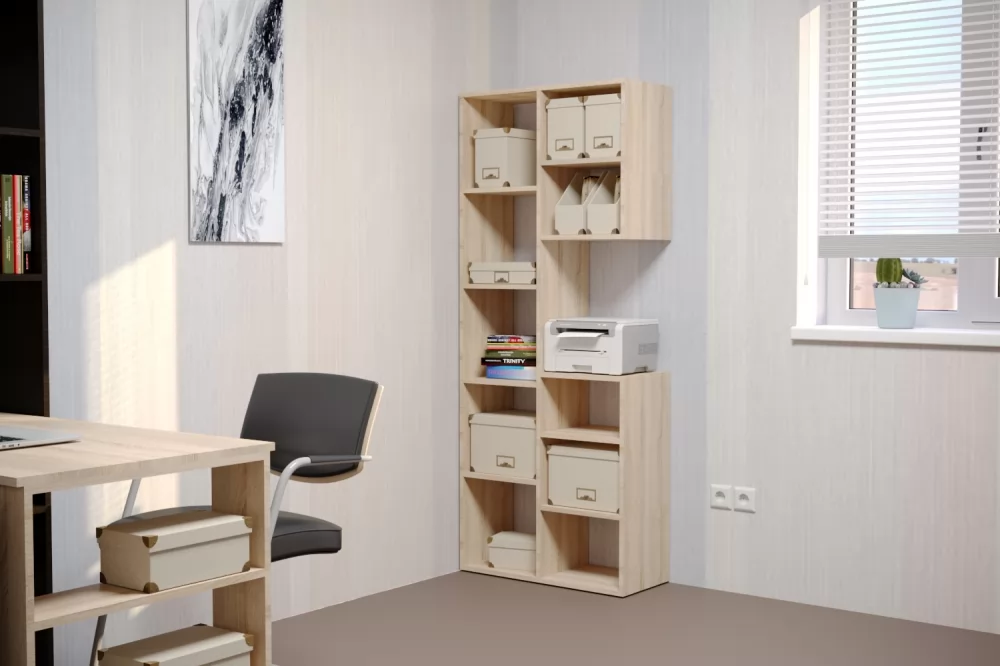 Стеллаж уместен как в зале или детской, в библиотеке или в рабочем кабинете, так и на кухне или столовой. Впишется как в городскую квартиру, так и в садовый домик или на дачу.
