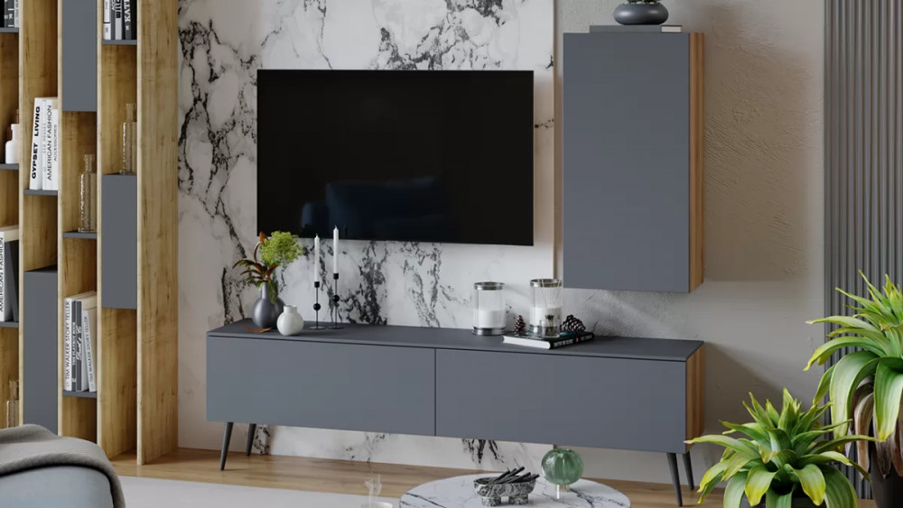 Гостиная «Порто» №3 Яблоня Беллуно, Графит софт в Радужном