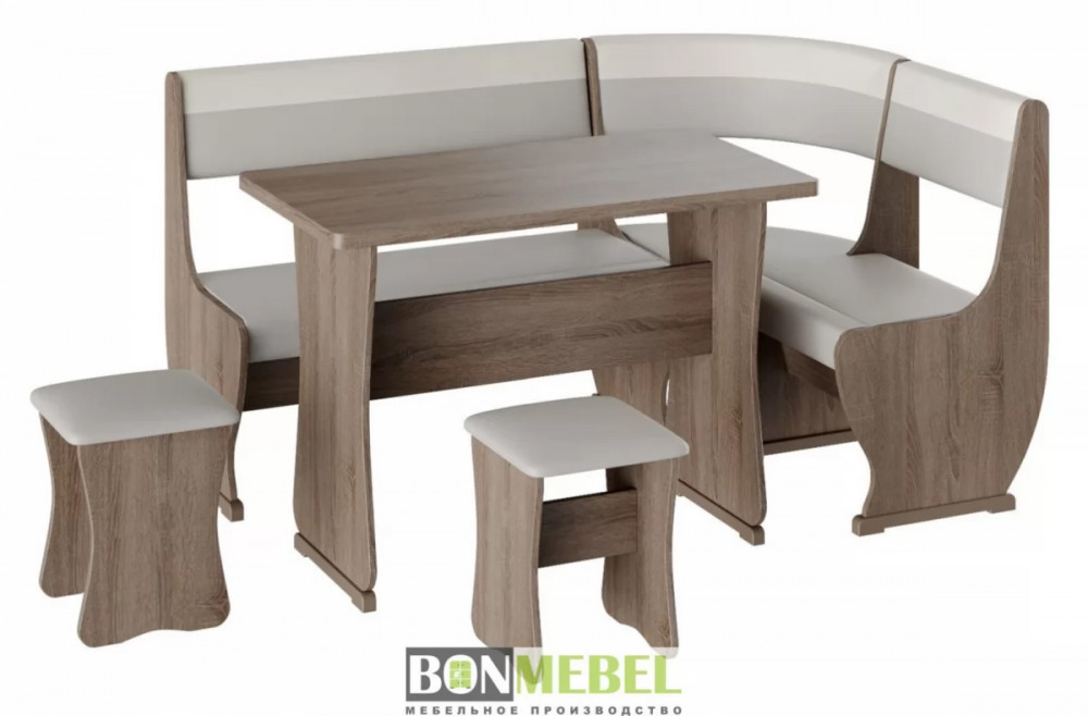 Небольшой кухонный уголок с мягкой обивкой в элегантном современном стиле. Модель, подходящая к большинству интерьеров, и создающая атмосферу уюта и комфорта на вашей кухне. Сборка скамьи универсальная — вы можете определить угол как с правой, так и с левой стороны.