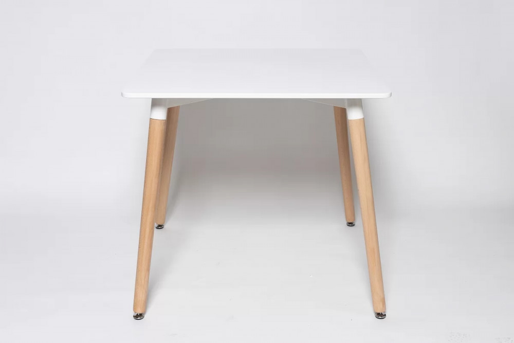 Стол в стилей Eames — настоящий хит скандинавского дизайна, уже несколько лет не теряющий своей популярности. Столешница выполнена из экологичного матового МДФ, по износостойкости и долговечности превосходящего натуральную древесину. Белый цвет столешницы привносит в пространство ощущение чистоты и свежести. Ножки из цельного массива светлого бука и геометрические металлические подпорки делают стол невероятно устойчивым и прочным. Благодаря натурального расцветке и округлой форме стол в стиле Eames DSW идеально впишется как в жилое помещение, так и в общественную зону кафе или ресторана, особенно хорошо подчеркнув интерьер в стиле минимализм или хай-тек.