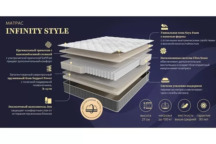 Матрас INFINITY STYLE 1200*2000мм (Пена/лен, жесткий, h 27см) в Радужном