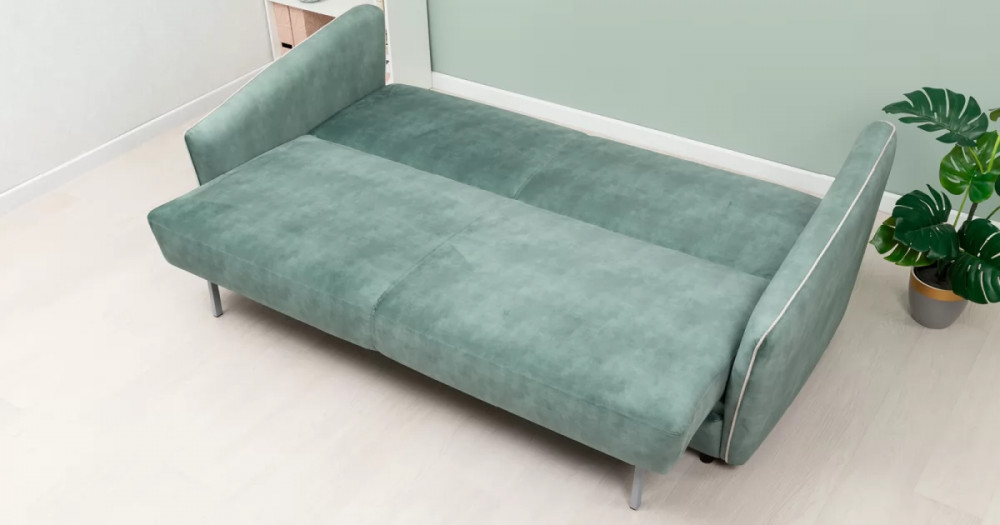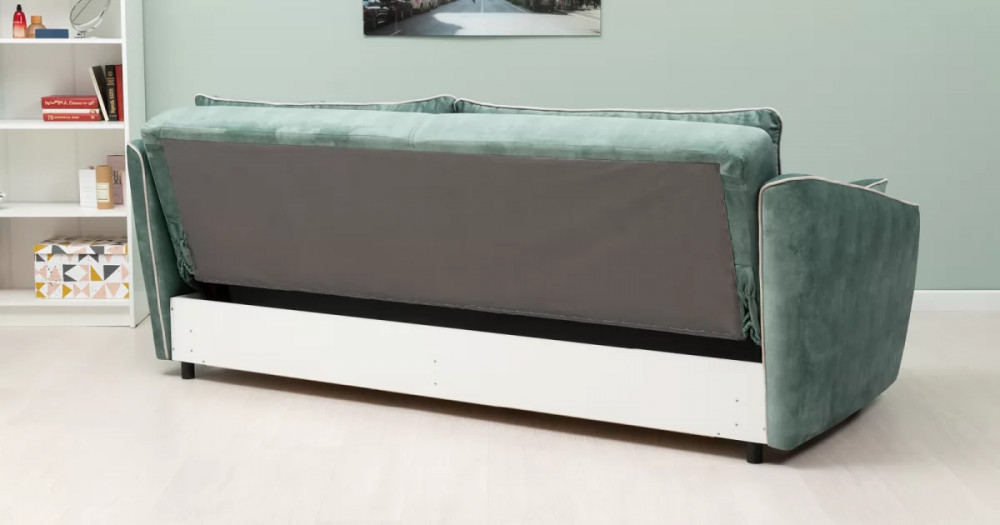 Габаритысложенный (Д x Г х В, мм): -2260 x 1090 x 920разложенный (Д x Г х В, мм): -2260 x 1340 x 750спальное место (Д x Ш, мм): -1980 x 1340высота посадки (мм): -445глубина сиденья (мм): -600высота спинки (мм): -560высота подлокотника от сиденья (мм): -150-300максимально допустимая нагрузка: -240 кг на диванМеханизм трансформации-Книжка с 0 стенойБельевой ящик-есть с перегородкой по центру (2 отделения)размер отделения (Д x Ш, мм): - 890 x 840 x 140Материалыосновная ткань: Greta (велюр)выполняется в тканях: Greta Jade (светлый хвойно-зеленый)/Greta Bone (слоновая кость)каркас: фанера-деревянный брус ДСП ДВПприспинные подушки, шт: -2съемные чехлы приспинных подушек: -естьдекоративные подушки, шт: -2наполнитель подушек: -крошка ППУ и полиэфирное волокно «шарики»цвет опор: -Опора регулируемая, круглая, чернаявысота опор (мм): -60Декор-Подлокотники с выраженным контрастным кантом по внешнему контуру изделия. Декоративные подушки оформлены декоративной отстрочкой «зигзаг».