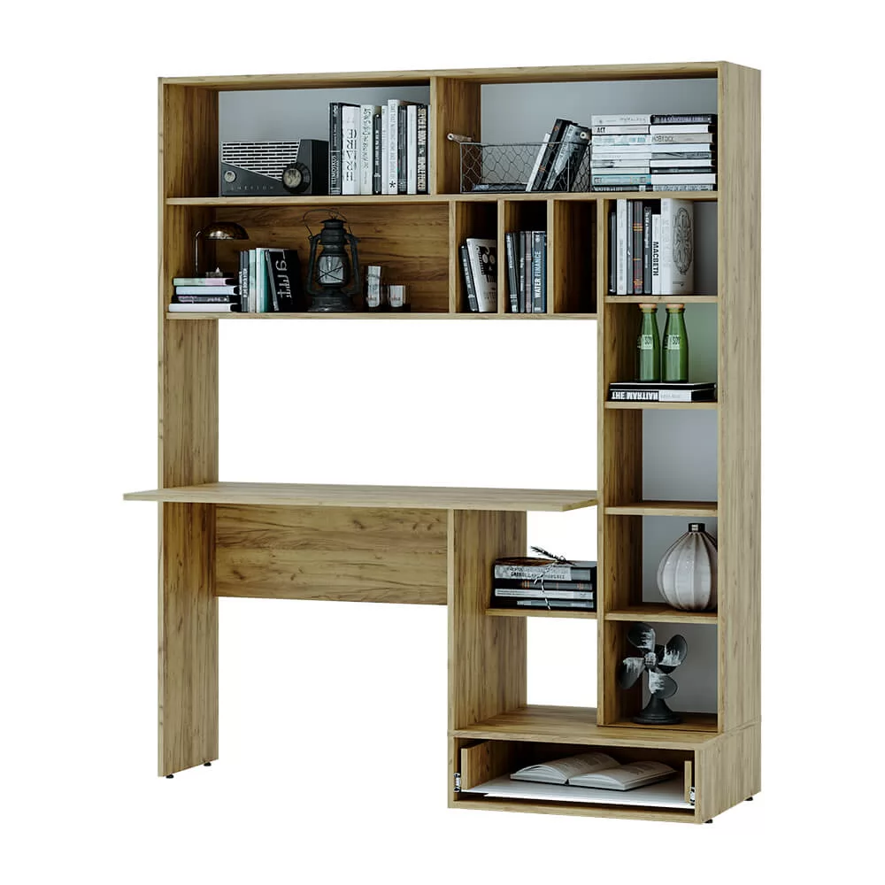 -в комплектацию входит столешница, верхние и боковые ниши, спрятанные за дверцы, нижний выдвижной ящик и открытые полки,