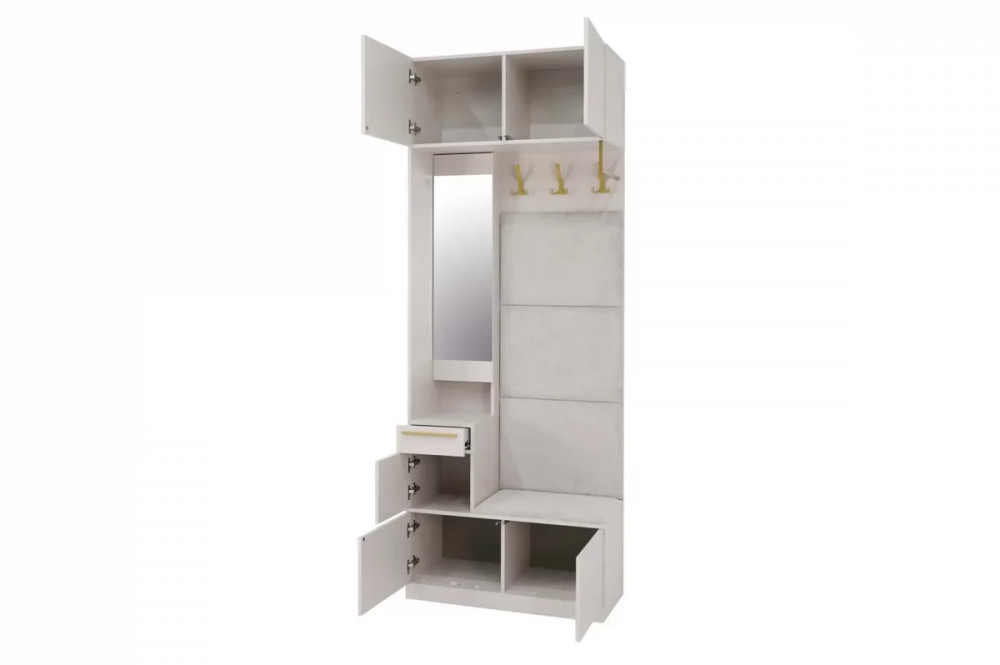 Размеры Ширина - 900 мм Глубина - 400 мм Высота - 2400 мм Вес: 74.6 кг Объём: 0.124 м3 Размеры упаковок 1984*684*32 902*438*80 896*396*120 1058*296*20 ЛДСП 16 мм Кромка ПВХ 1 мм Шариковые направляющие Петли с доводчиками Ручки металл: черные матовые или сатиновое золото