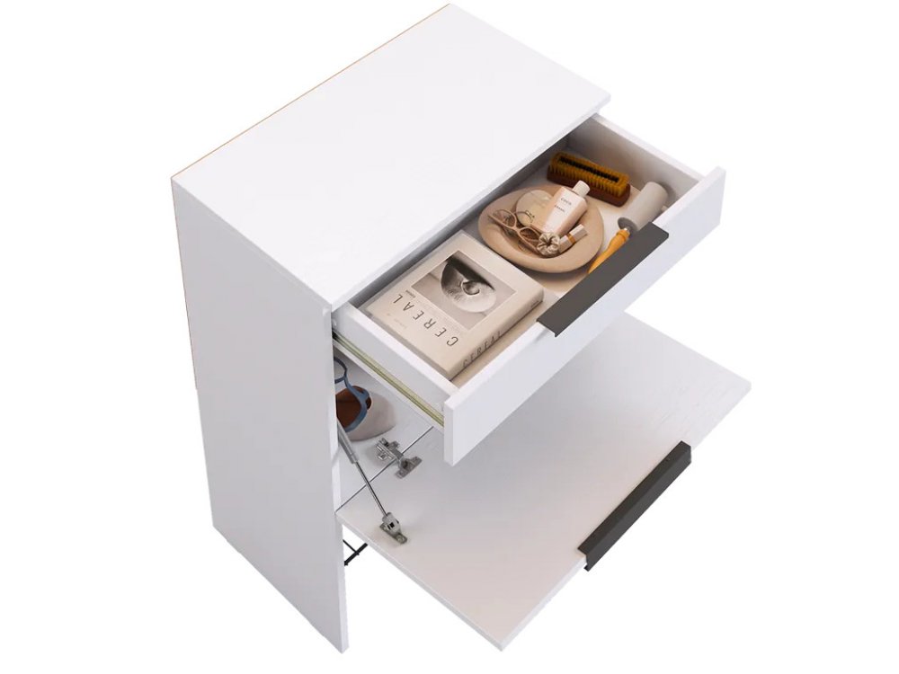 Максимальная нагрузка на ящик: 15 кг Материал фасада: ЛДСП 16 мм Материал корпуса: ЛДСП 16 мм Материал опор: Пластик Материал ручек: Пластик
