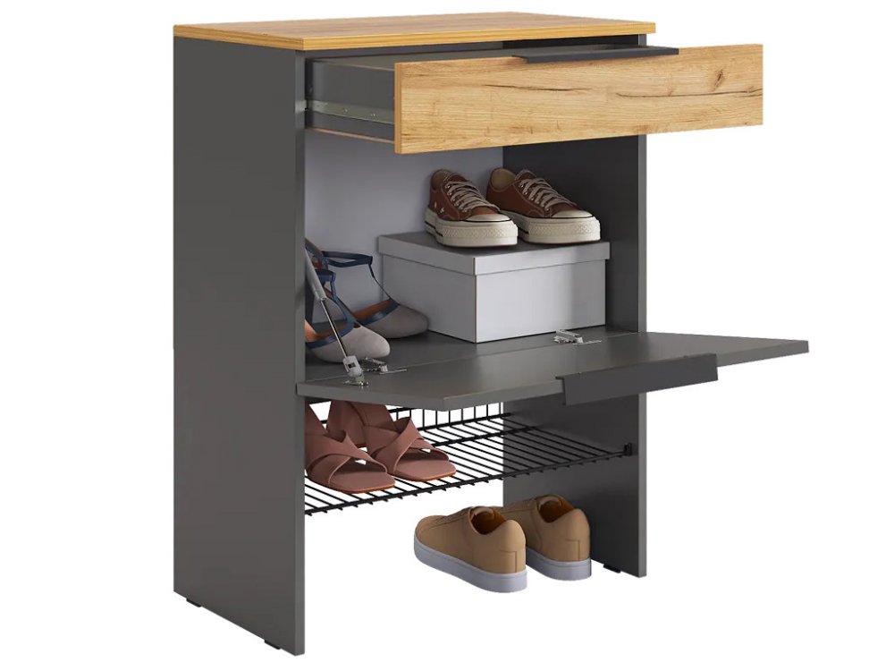 Обувница Баско графит/дуб крафт золотой в Радужном