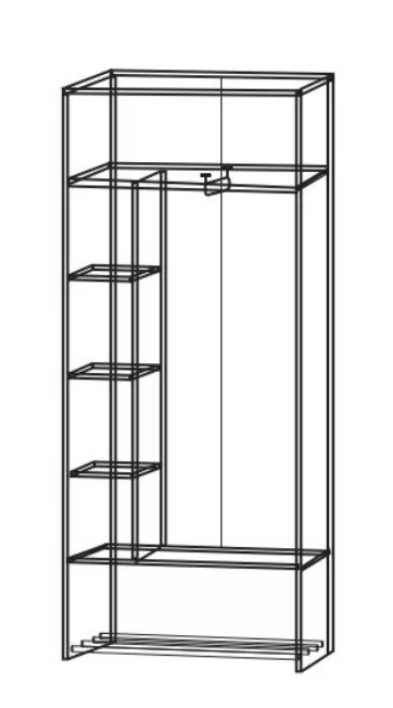 Ширина (мм): 832 Высота (мм): 2000 Глубина (мм): 460 Цвет: Винтерберг Материал: ЛДСП/Зеркало Коллекция: Ольга-Милк Стиль: Современный Корпус — ЛДСП 16 мм Кромка ПВХ 1 мм Выдвижная штанга Полка для обуви Регулируемые опоры