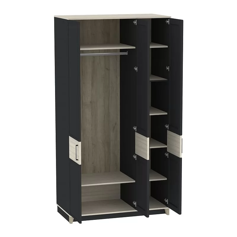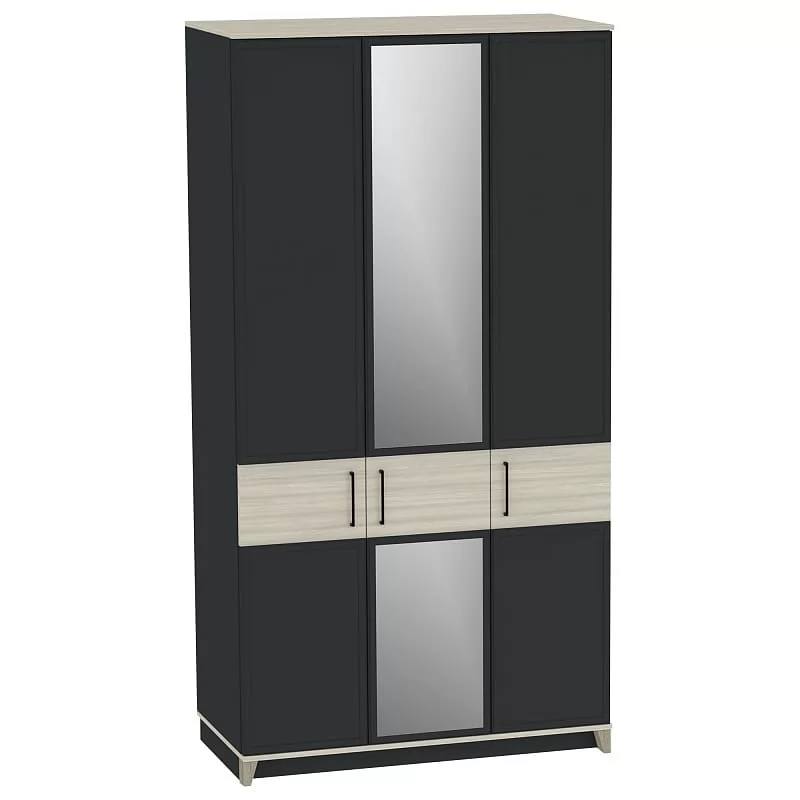 Изысканность стиля подчеркивает тонкий фигурный профиль на фасадах, верх и низ модулей выполнены в древесном декоре, а скошенные опоры из МДФ добавляют мебели в стиле неоклассика из коллекции AURELIO нотку современной эстетики. Петли с доводчиками - для комфортного открывания / закрывания дверок шкафа. Задняя стенка шкафа в древесном декоре устанавливается в паз, поэтому выглядит аккуратно со всех сторон.