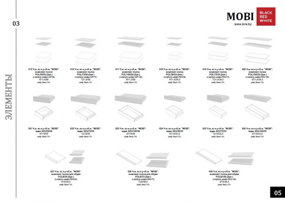 • MOBI комплект полок для обуви POLB/75 (2шт.) (Белый)