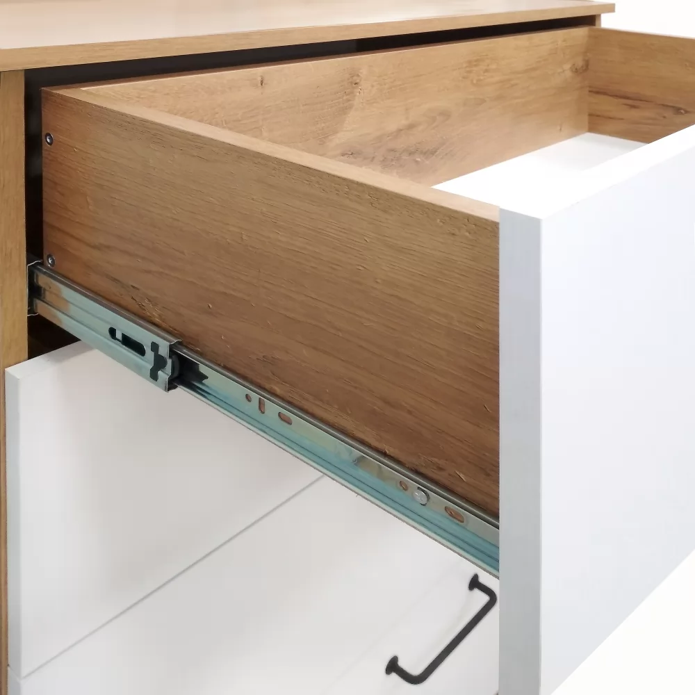 Выкатные ящики работают на шариковых направляющих полного выдвижения - тихие, надёжные, позволяющие увидеть и использовать всё пространство ящика.