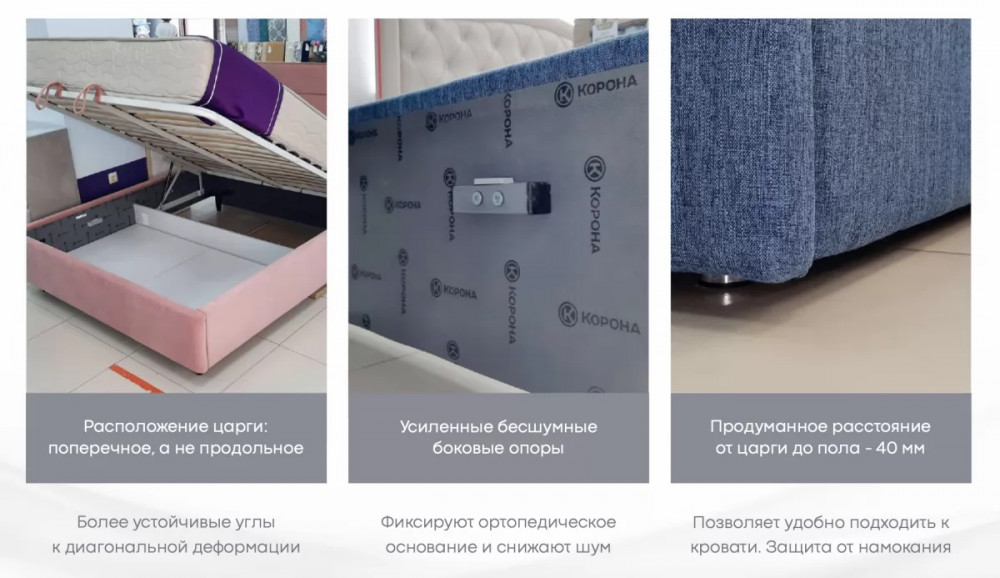 • Cпинка оптимальной высоты, благодаря чему кровать хорошо будет смотреться в спальной комнате как с невысокими, так и с высокими потолками