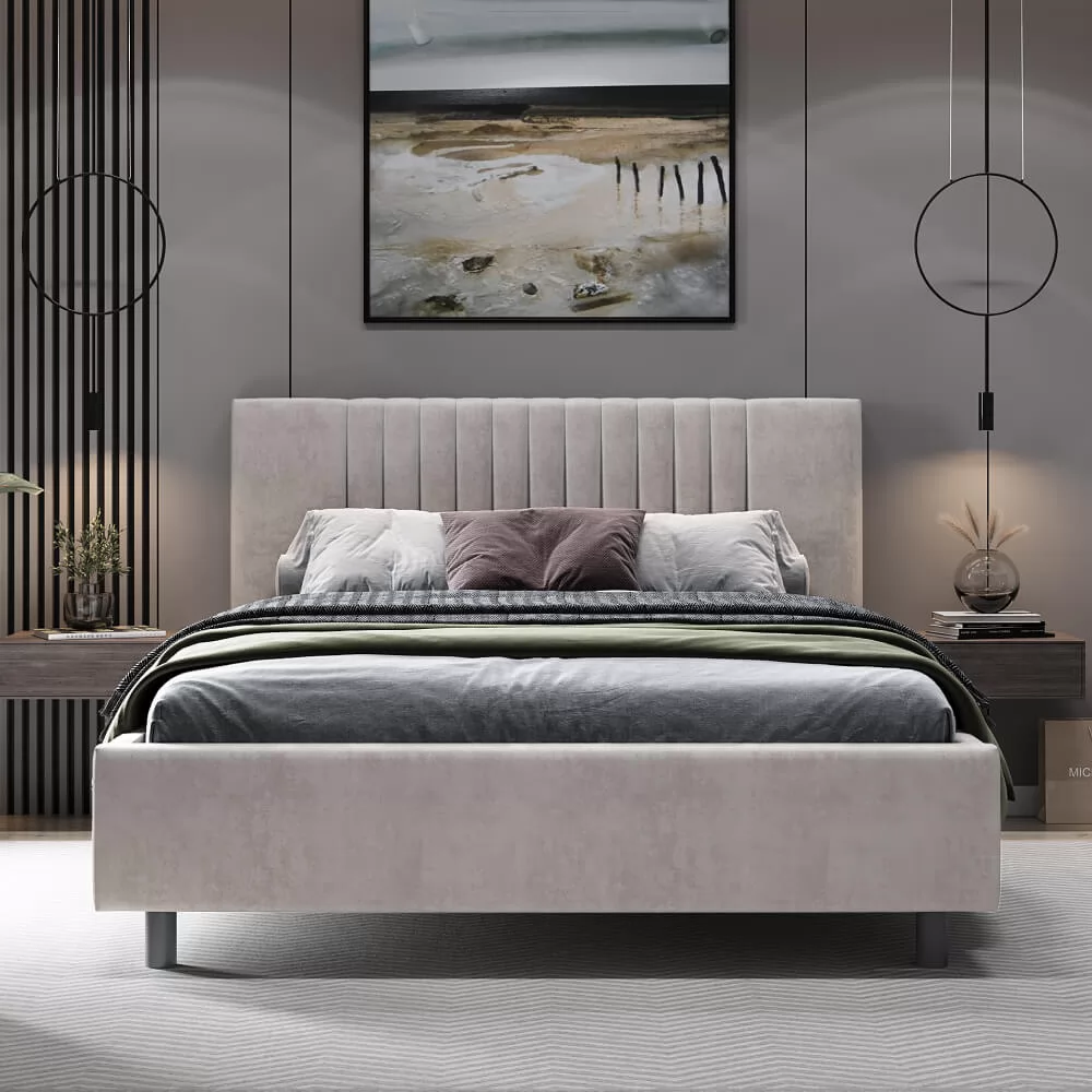 Дизайн с вертикальными линиями изголовья, разбавят монотонность интерьера.