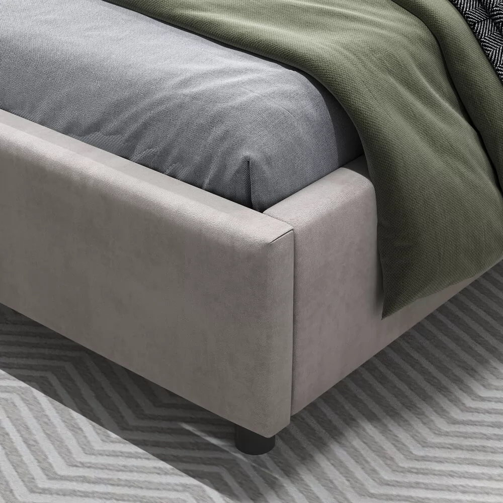Достоинства данной кровати — это актуальный дизайн с вертикальными полосами, который отлично впишется в современный интерьер. Наличие ножек обеспечивает беспрепятственную работу робота-пылесоса. Модель кровати также оснащена удобными карманами на царгах с обеих сторон, обеспечивая оптимальное сочетание функциональности и доступной стоимости.