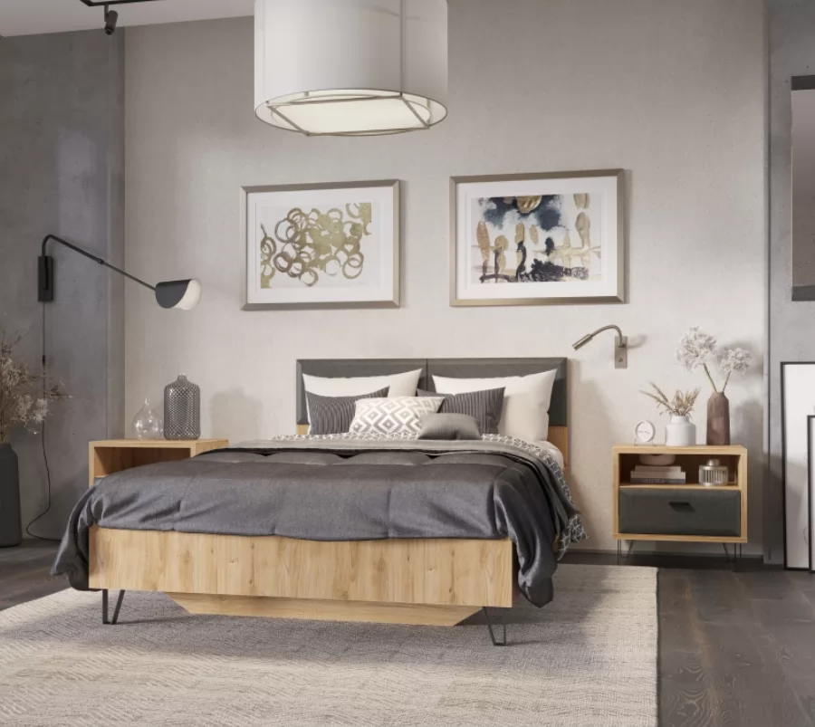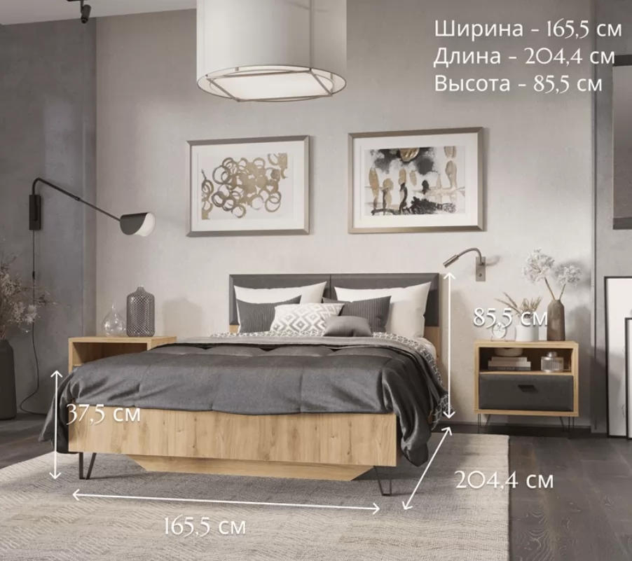 GRACE кровать LOZ160х200 (Дуб наварра/ Графит) в Радужном