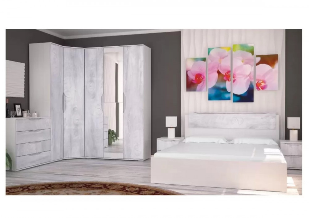 • Благодаря МДФ фасадам с интегрированной ручкой «HAND-LESS» в износостойкой пленке ПВХ с древесной структурой в новом цвете «Рамбла», серия «Сорренто» отлично вписывается в спальню.