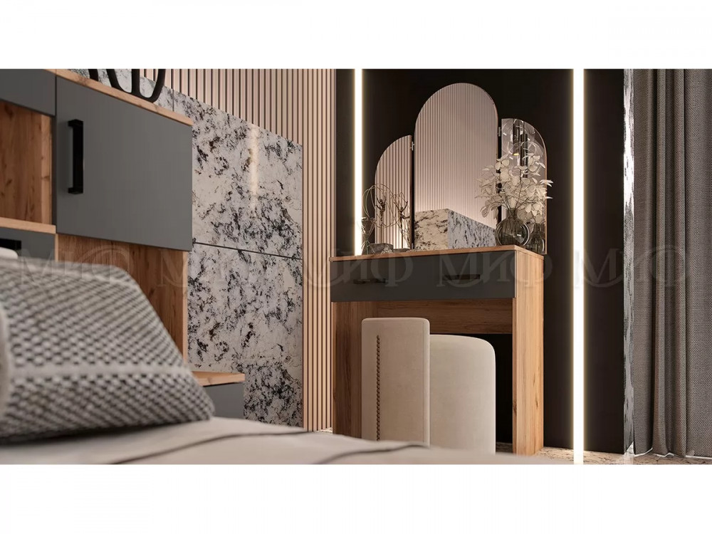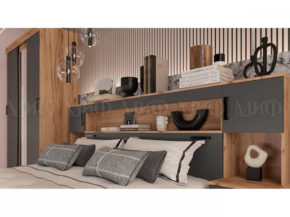 Спальный гарнитур Басямиф, графит/дуб крафт в Радужном