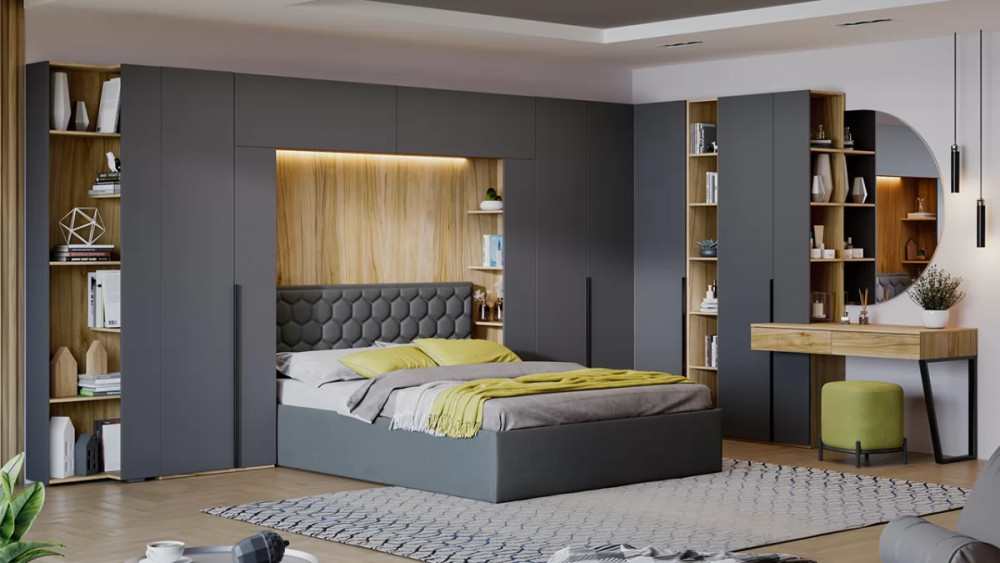 Спальня «Порто» Яблоня Беллуно, Графит софт в Радужном
