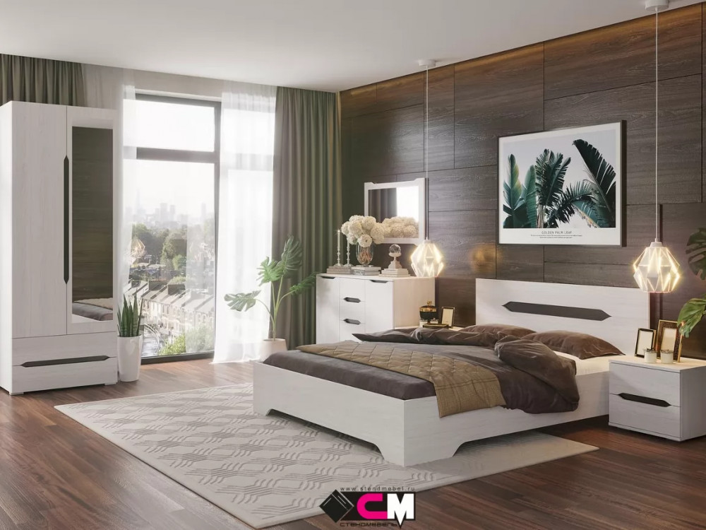 Спальный гарнитур Валенсия от производителя Стендмебель изготовлен из современного качественного ЛДСП.