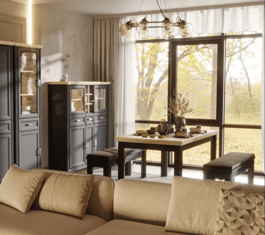 Стилизованные ножки гарантируют устойчивость конструкции. Графитовый цвет привнесет индивидуальности в интерьер.